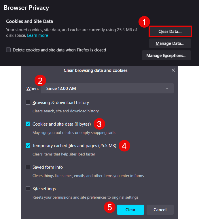 To Clear Cache & Cookies (Firefox)